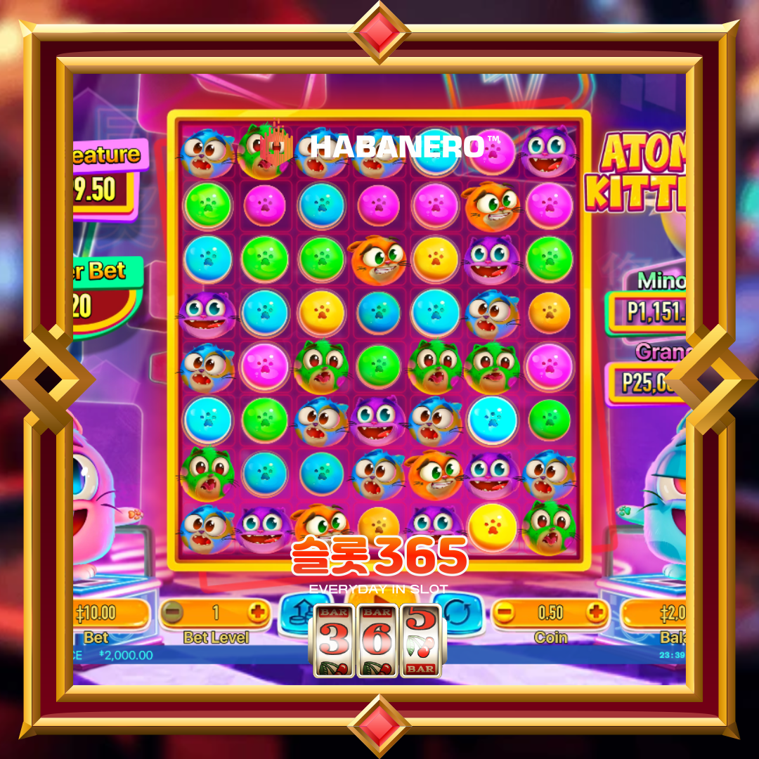 Atomic Kittens은 통통 튀는 고양이 캐릭터와 실과 폭탄 같은 장난기 넘치는 아이콘으로 테마를 살렸습니다. 와일드 심볼은 일반 페이를 대체하여 승리 그룹을 완성하는 데 도움이 되며, 실 심볼은 승리 승수를 적용하여 동일한 스핀에서 더 큰 총합을 만들 수 있습니다. 승리는 그리드의 어느 곳에서나 계산되기 때문에 이러한 도우미는 매우 중요합니다. 완벽한 타이밍의 와일드 또는 멀티플라이어 하나가 캐스케이드를 연결하여 작은 시작을 주목할 만한 결과로 바꿀 수 있습니다.