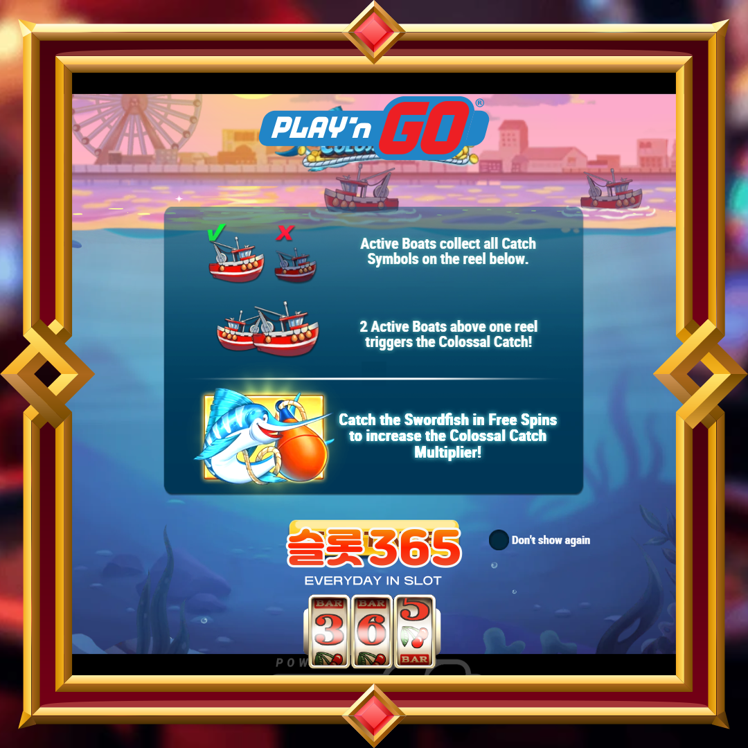 - 프리 스핀 동안 보트는 매 스핀마다 그물을 던지며, 두 보트가 모두 하나의 릴 위에 정렬되면 콜로서컬 캐치가 다시 트리거됩니다.