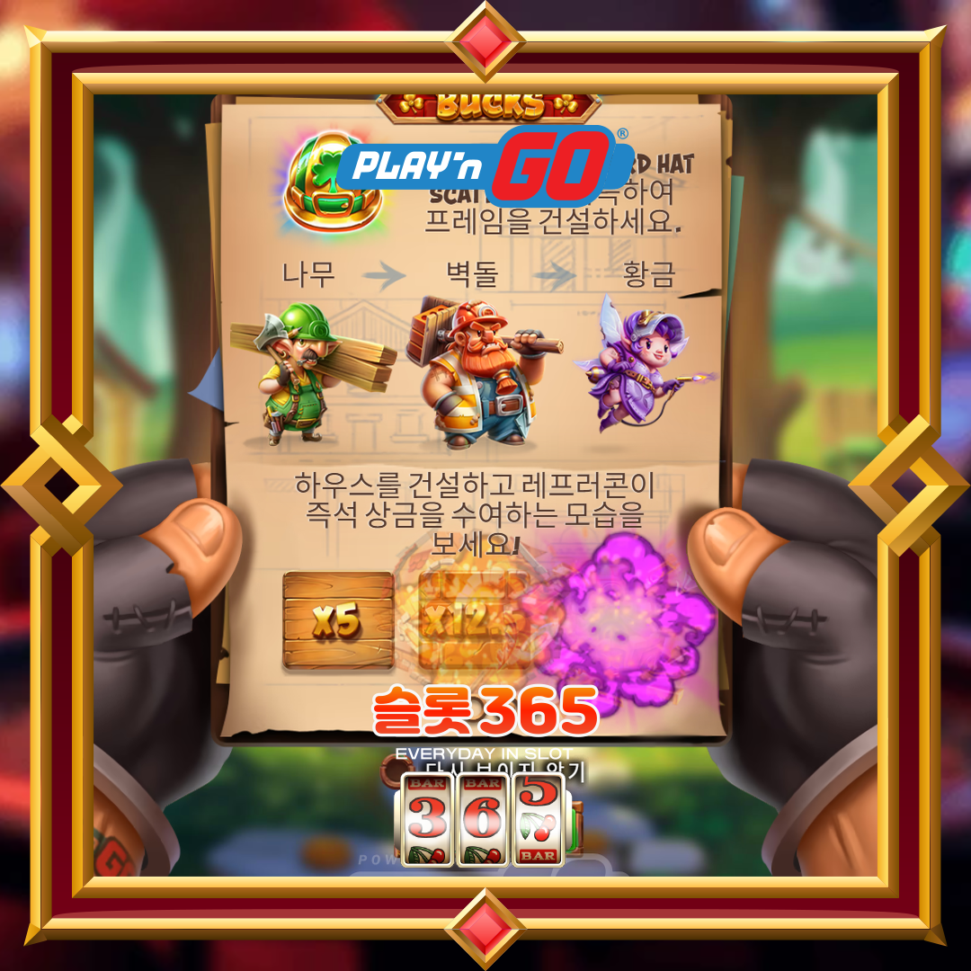 Buildin’ Bucks 는 우디 엘프, 그라우트 브리키, 요정 메리 등 부지런한 캐릭터 트리오가 안전모를 쓰고 장난꾸러기 요정이 소란을 피우는 동화책 속 숲을 배경으로 릴을 펼칩니다. 2024년 9월 12일에 출시되어 Play’n GO의 카탈로그에 경쾌한 조립과 업그레이드를 더했습니다.
