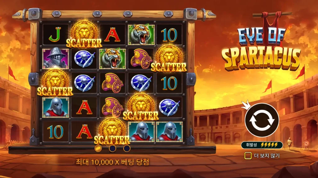 Eye of Spartacus은 프리 스핀 기능에서 빛을 발합니다. 사자 산탄총을 떨어뜨리면 라운드가 시작되며, 세 개를 떨어뜨리면 10번의 무료 스핀이 주어지고, 네 개와 다섯 개를 떨어뜨리면 각각 15번과 20번을 얻을 수 있다는 평판이 좋은 리뷰가 있습니다. 이 기능이 진행되는 동안 확장 와일드가 착지할 때마다 새로운 승수가 추가될 뿐만 아니라 가장 낮은 고 지불 심볼이 남은 라운드 동안 다음 단계로 업그레이드되고 1회의 추가 스핀이 부여됩니다. 보너스가 오래 지속될수록 약한 고점을 천천히 제거하여 평균 라인 값을 상향 조정하므로 한 번에 변동성이 폭발하는 것이 아니라 라운드가 진행되는 듯한 느낌을 줍니다.