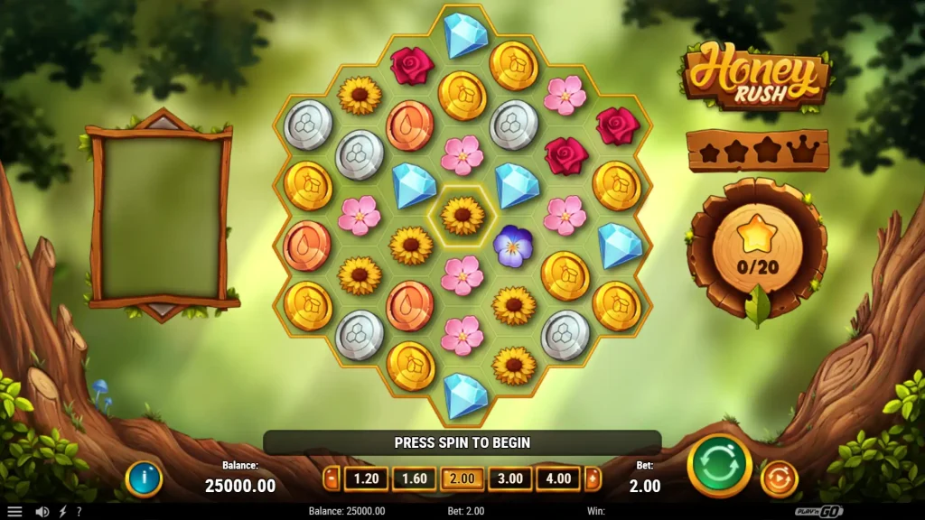 Honey Rush는 육각형 “벌집” 그리드를 사용하여 클러스터 기반 승리, 끈적한 와일드, 최대 승리 가능성이 높은 “러쉬 미터” 보너스 시스템을 제공하는 Play’n GO의 벌집을 테마로 한 온라인 슬롯입니다.