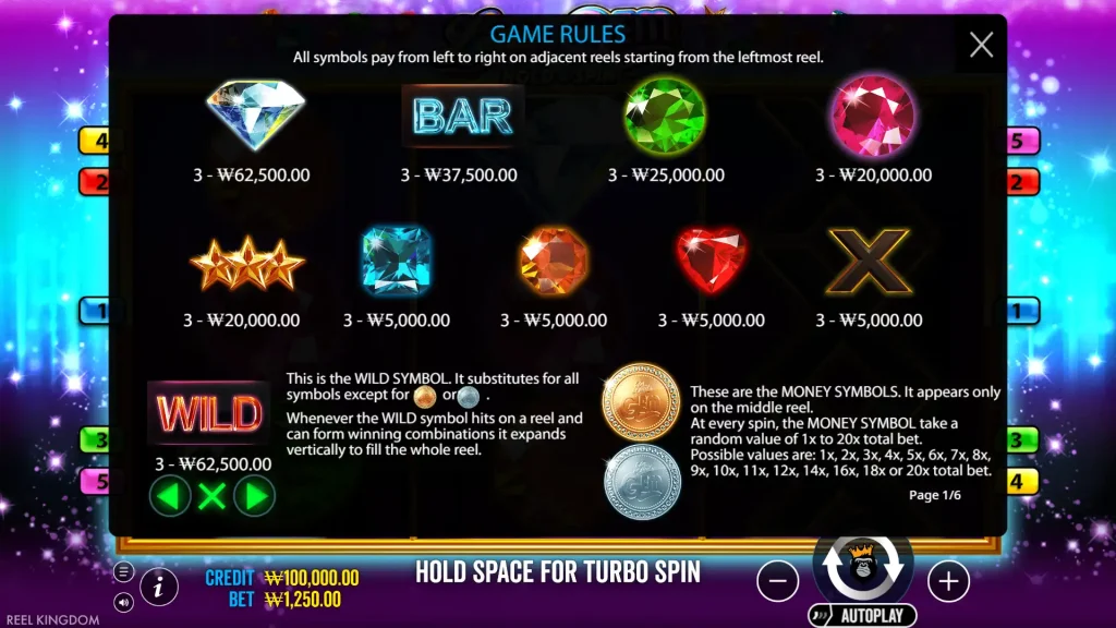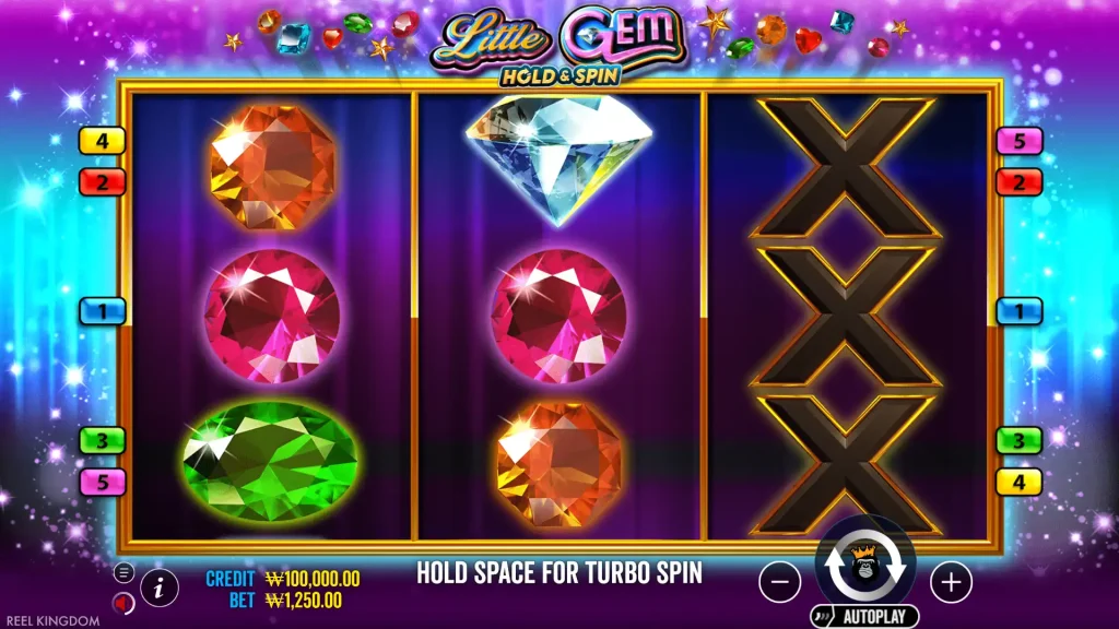 Little Gem Hold & Spin은 3×3, 5 페이라인의 프래그매틱 플레이 슬롯으로, 확장 와일드와 홀드 & 스핀 보너스로 최대 2,460배의 베팅을 달성할 수 있습니다.