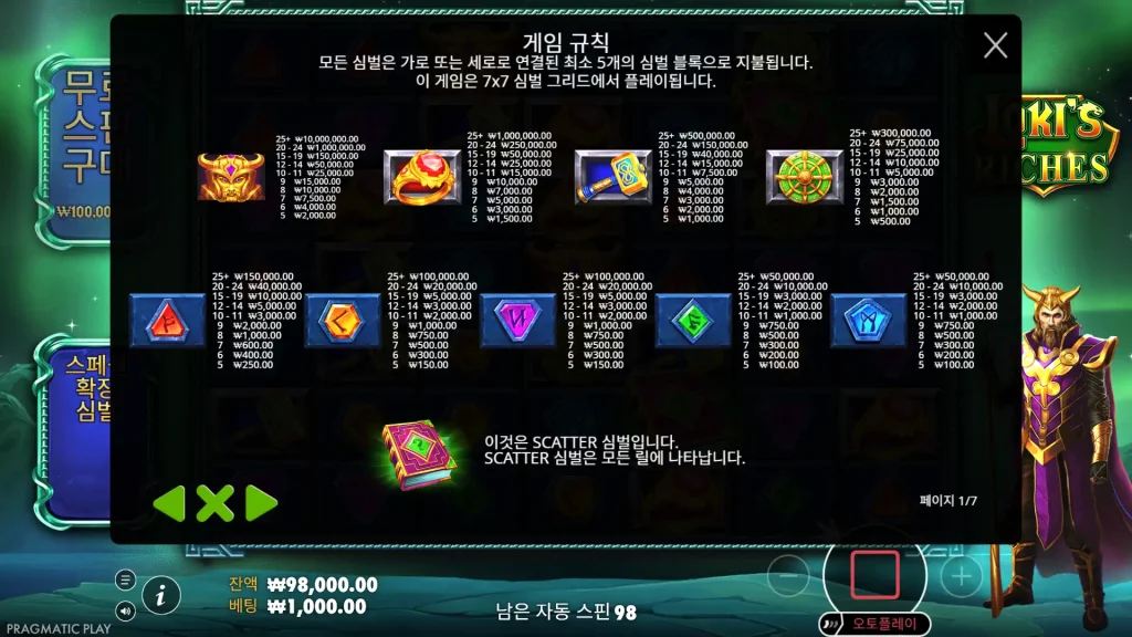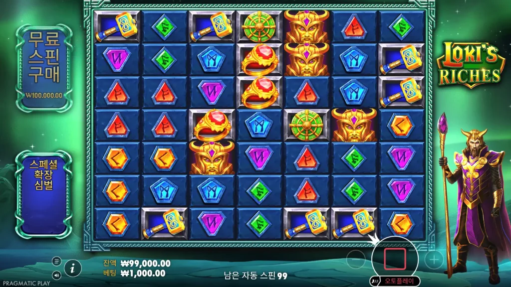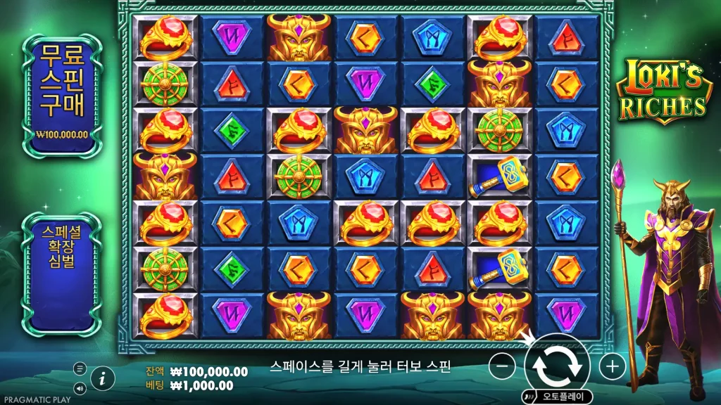 Loki’s Riches는 텀블링 승리, 특수 확장 기호, 프리 스핀, 최대 10,000배의 베팅을 특징으로 하는 프래그매틱 플레이의 7×7 클러스터 지불 그리드 슬롯입니다.