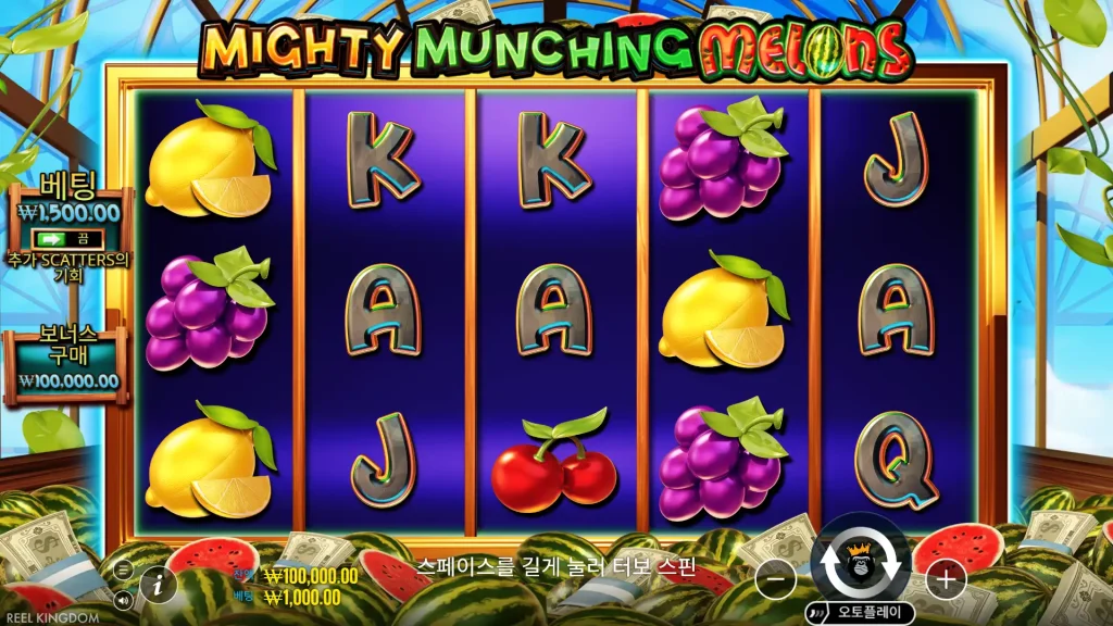 Mighty Munching Melons은 프래그마틱 플레이의 5×3, 10 페이라인 과일 슬롯으로, 클래식 심볼과 리핀 스타일 보너스 및 보너스 구매 옵션이 혼합되어 있습니다.