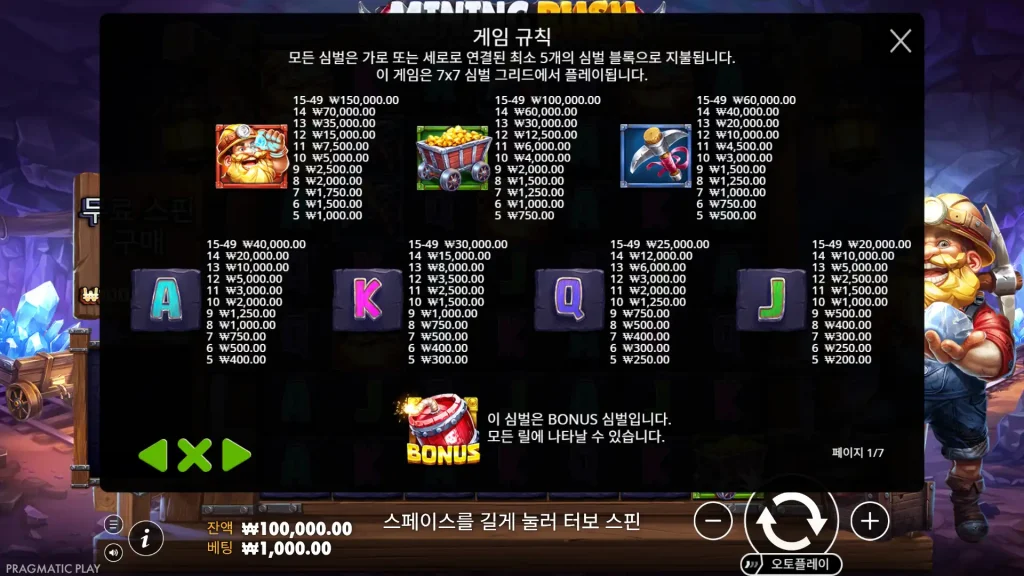 [무료 슬롯] 마이닝 러쉬 – 프라그마틱 플레이(Pragmatic Play)