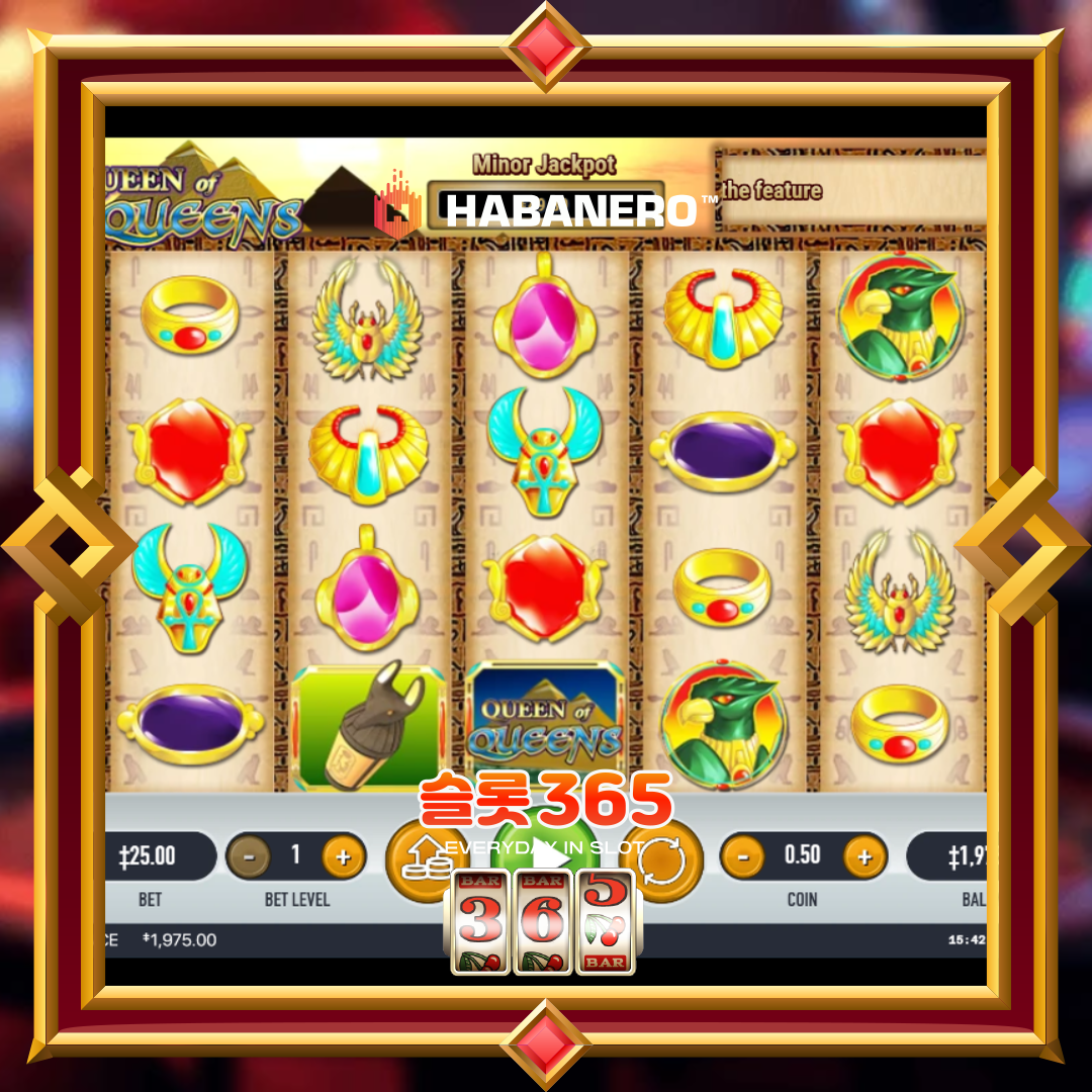 Queen of Queens II는 하바네로가 클레오파트라에서 영감을 받은 클래식의 속편으로, 오리지널의 5×3, 243웨이 설정을 5×4 그리드로 확장하여 1,024웨이로 승리할 수 있습니다. 이러한 변화는 플레이 속도를 눈에 띄게 바꾸고 기존 페이라인 없이도 더 자주 라인을 맞힐 수 있게 해줍니다. 테마는 왕실의 보물 반지, 풍뎅이, 개미, 고양이 등 반짝이는 왕실 보물에 충실하며 여왕이 직접 와일드로서 릴을 지휘합니다.