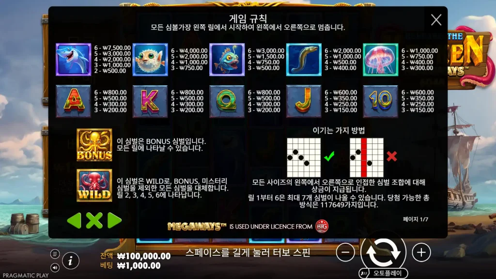 Release the Kraken Megaways는 스튜디오의 바다 괴물 시리즈를 빅 타임 게이밍의 캐스케이딩 형식으로 가져와, 끊임없이 변화하는 6 릴 그리드를 사용하여 최대 117,649가지 방법으로 승리할 수 있습니다. 각 스핀은 릴당 2~7개의 기호를 표시할 수 있어 기본 게임을 활기차고 예측할 수 없게 만드는 변화무쌍한 레이아웃을 만들어냅니다. 프래그머티스틱 플레이의 공식 게임 페이지에서는 메가웨이즈의 상한선을 117,649로 확정하고 릴 전체에 심해 생물들이 등장하여 분위기를 조성합니다.