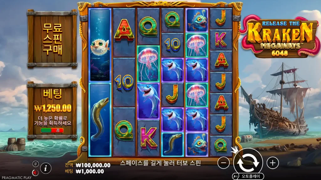 Release the Kraken Megaways는 메가웨이즈 액션, 로밍 와일드 리스핀, 10,000배 승리가 가능한 프리 스핀 라운드가 추가된 6-릴 프래그매틱 플레이 슬롯입니다.