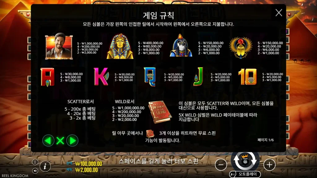 - 북 스캐터를 3개 이상 맞추면 10번의 무료 스핀이 주어집니다.