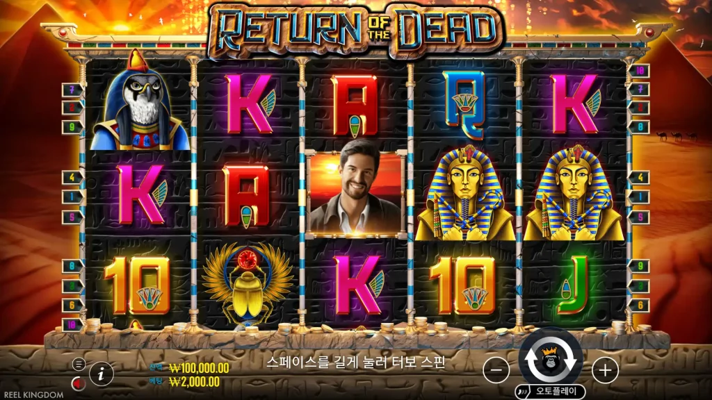Return of the Dead는 프라그마틱 플레이의 5×3, 10 페이 라인 “북 스타일” 슬롯으로, 와일드 스캐터 북, 프리 스핀, 무작위로 선택되는 확장 기호를 혼합하여 고전 이집트 액션을 선사합니다.
