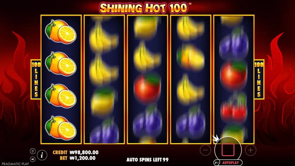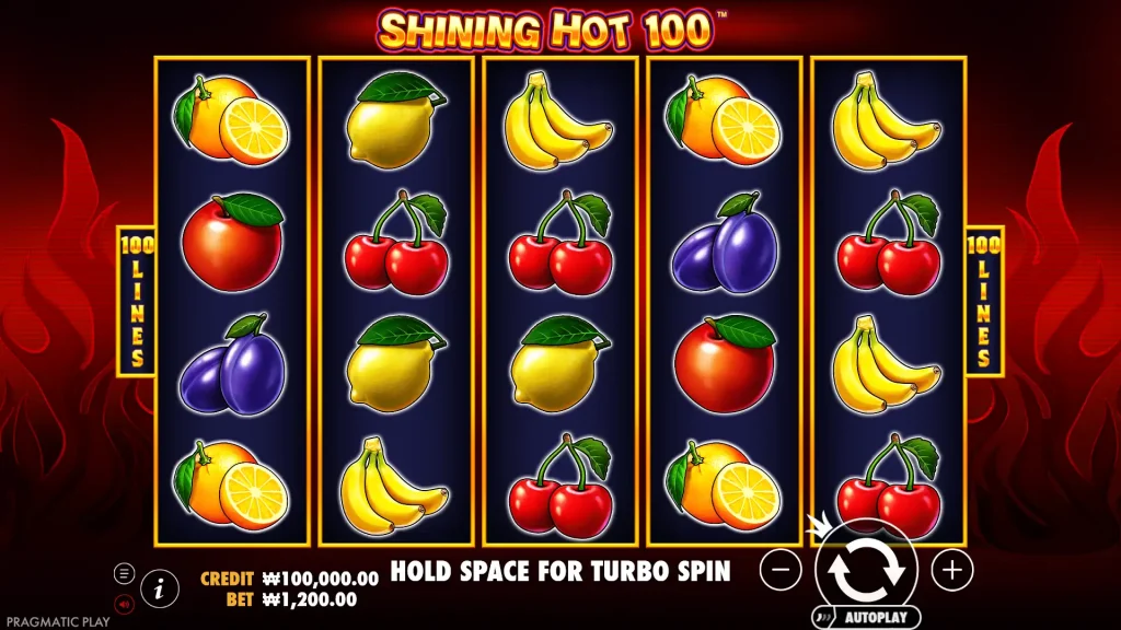 Shining Hot 100은 프라그마틱 플레이의 복고풍 과일 슬롯으로, 스택 심볼, 와일드, 스캐터 페이가 100가지 방식으로 혼합되어 있으며 최대 2,500배의 당첨금을 제공합니다.