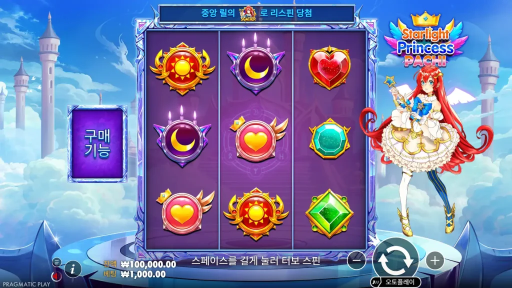 Starlight Princess Pachi는 프라매틱 플레이 시리즈의 친숙한 애니메이션 왕국을 27가지 방법, 리 스핀, 프리 스핀 및 추가 “슈퍼 프리 스핀” 레이어가 있는 빠른 속도의 3×3 슬롯으로 재구성한 게임입니다.