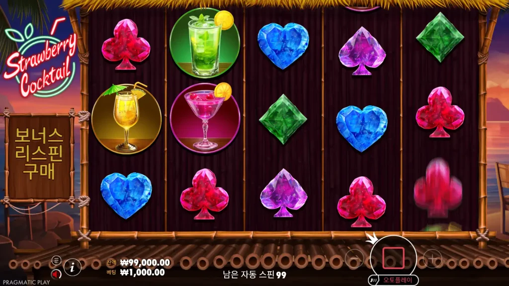 Strawberry Cocktail은 또한 보너스 구매를 통해 피처 헌터들을 위한 보너스 라운드에 즉시 입장할 수 있는 보너스 구매 옵션을 제공합니다. 이 옵션은 리뷰와 데이터베이스에 널리 문서화되어 있으며 게임의 높은 변동성에 부합하는 옵션으로, 보드 게임의 더 나은 배율과 16,000배 상한선에 도전하기 위해 잔고의 일부를 효과적으로 거래하는 것입니다. 항상 그렇듯이 구매 기능의 사용 가능 여부는 시장과 운영자에 따라 다를 수 있지만, 제공되는 곳에서는 게임의 시그니처 경험을 온디맨드 방식으로 제공합니다.