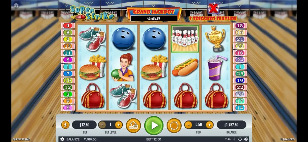 Super Strike는 하바네로의 5×3, 25 라인 비디오 슬롯에 경쾌한 볼링 테마를 도입하여 클래식 와일드, 스캐터 및 무료 게임을 96.02%의 꾸준한 RTP와 함께 제공합니다.