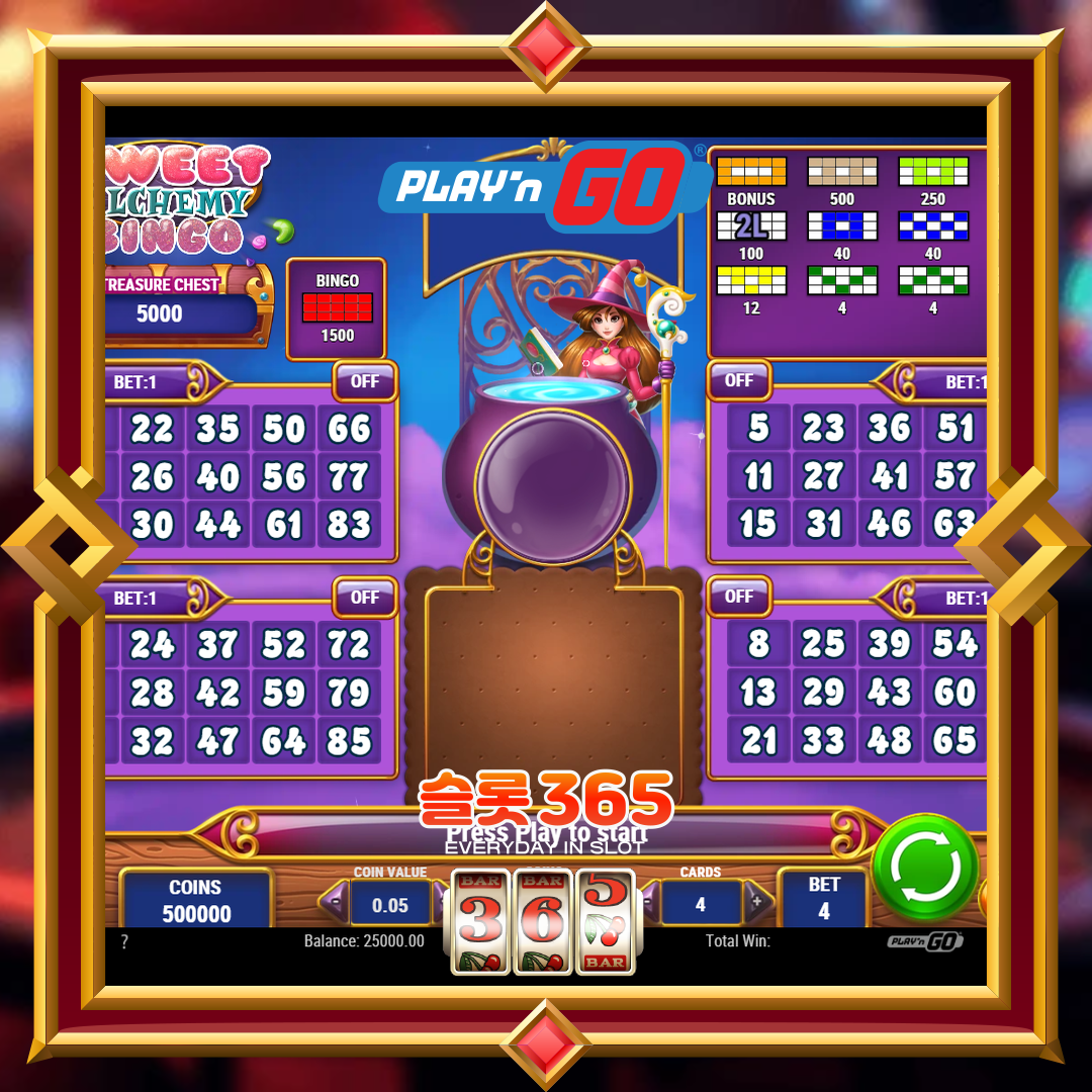 [무료슬롯] 스위트 알커미 빙고 – 플레이엔고(PLAY’n GO)