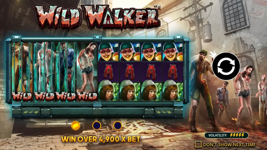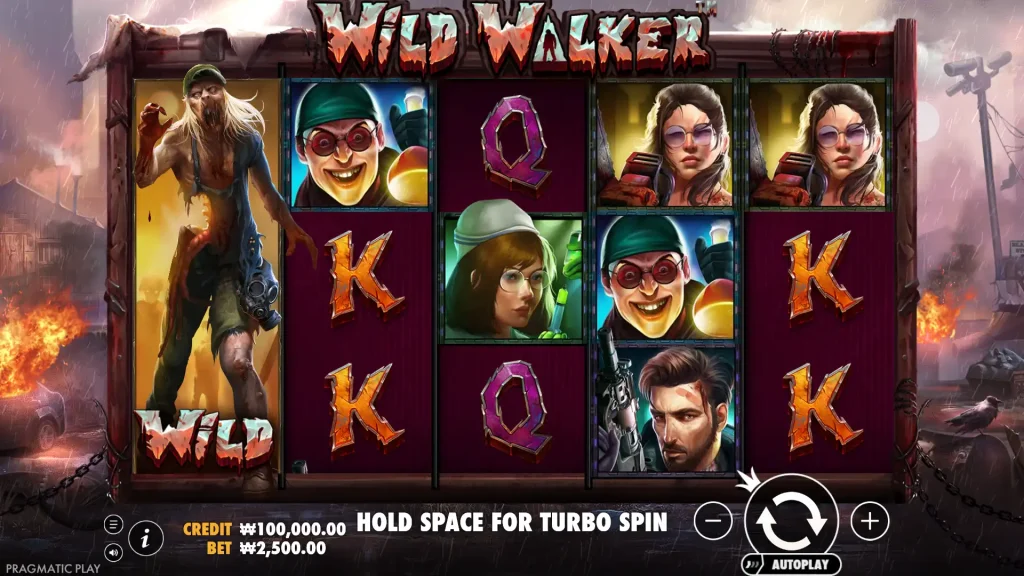 Wild Walker는 프래그매틱 플레이의 5릴 슬롯에 좀비 영화의 변주를 더한 작품으로, 최대 8릴까지 확장 가능하며 로밍 와일드와 다단계 프리 스핀 기능을 제공합니다.