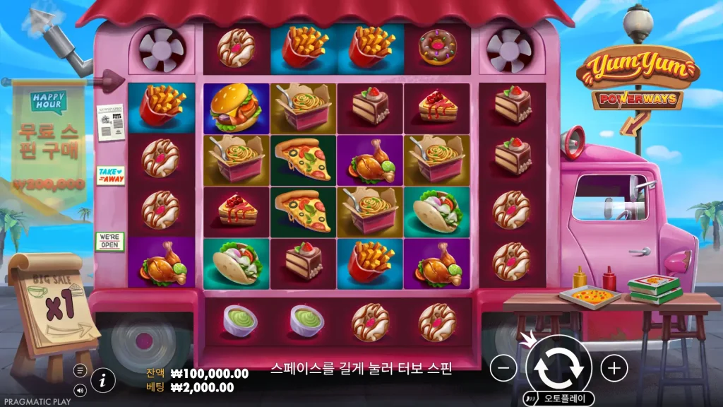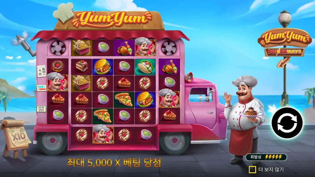 Yum Yum Powerways는 음식을 테마로 한 프래그마틱 플레이 슬롯으로, 16,384개의 “파워웨이즈” 레이아웃을 사용하여 4면에서 승리하고 텀블링 승리로 승수를 쌓을 수 있는 슬롯입니다.